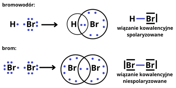 Br2 – różnica elektroujemności 0,0 – wiązanie kowalencyjne niespolaryzowane