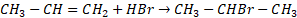 Alken w reakcji z fluorowcowodorem daje w reakcji addycji fluorowcopochodną alkanu (jeden produkt – addycja).