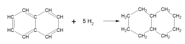 Widać, że z 1 mola naftalenu powstaje 1 mol dekaliny, czyli masowo: