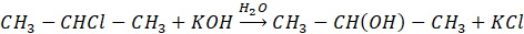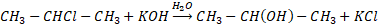 2-chloropropan w reakcji z KOH w środowisku wodnym daje alkohol: