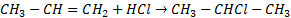 Propen w reakcji z HCl daje 2-chloropropan: