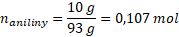 Na początku sprawdźmy, czy istnieje jakiś nadmiar, więc policzmy liczbę moli aniliny: