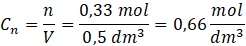 Teraz podstaw do wzoru na stężenie molowe i oblicz: