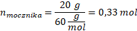 Na początku oblicz liczbę moli mocznika: