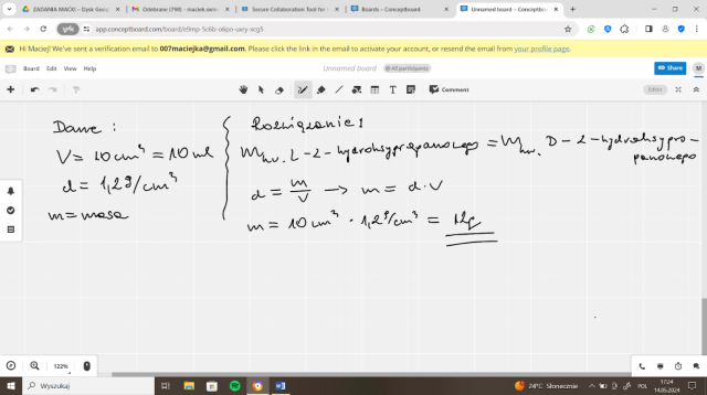 W tym zadaniu musisz obliczyć ile gramów kwasu L – 2 – hydroksypropanowego należy dodać aby uzyskać mieszaninę racemiczną