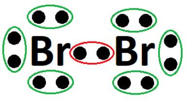 Na zielono zaznaczono niewiążące pary elektronowe. Na czerwono – wiążącą parę elektronową oraz dwa elektrony wspólne. Stanowią one jedno wiązanie.