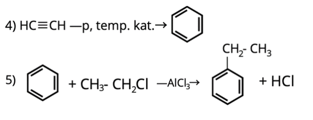 Pierwsze trzy reakcje obrazują metodę otrzymywania etynu. Jest to proces wieloetapowy, który zachodzi następująco:
