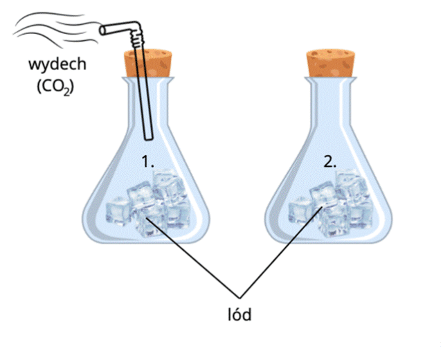 W tym celu możemy umieścić kostki lodu w dwóch kolbach, które zamykamy korkiem. Do jednej z nich wydychamy powietrze. Powietrze wydychane z płuc jest bogate w tlenek węgla(IV). Wzrost temperatury, wynikający z wtłoczenia tego gazu do kolby, przyspieszy rozpuszczanie się lodu i pozwoli na potwierdzenie hipotezy.