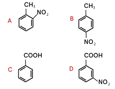 Toluen ma podstawnik metylowy. Podstawnik ten jest podstawnikiem I rodzaju, co oznacza, że kieruje podstawniki w pozycje orto- i para (2- i 4-). Podczas nitrowania powstać może orto-nitrotoluen i para-nitrotoluen (A/B).