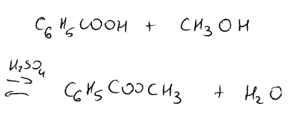 W reakcji estryfikacji kwas reaguje z alkoholem w środowisku kwasu siarkowego(VI). Jest on potrzebny do wiązania wody, która się tworzy. Jako produkt dostajemy ester i wodę.