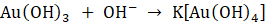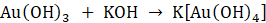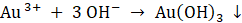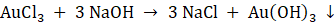 1. Odważamy na wadze laboratoryjnej 0,1 mol chlorku złota i wsypujemy go do zlewki. Zlewkę uzupełniamy wodą do objętości np. 100 cm3, a następnie mieszając rozpuszczamy cały AuCl3. Do takiej samej ilości wody w drugiej zlewce wsypujemy 0,3 mole NaOH i po rozpuszczeniu mieszamy zawartość obu zlewek.
