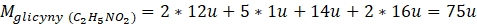 3 – Masa cząsteczkowa glicyny wynosi 75 u, ponieważ: