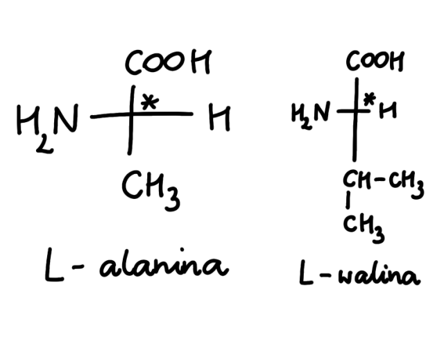Warto pamiętać, że aminokwasy białkowe wykazują konfigurację L.