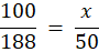 Za pomocą proporcji zestaw ze sobą dane wynikające z rozpuszczalności substancji (100 g wody odpowiada 188 g roztworu) oraz niewiadomą masy wody w 50 g roztworu (x g wody odpowiada 50 g roztworu). Oblicz x.