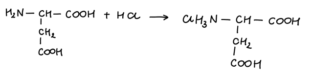 W tym zadaniu należy zapisać równanie reakcji chemicznej pomiędzy kwasem asparaginowym a kwasem solnym.
