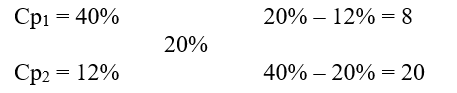 8 porcji roztworu o stężeniu 40% + 20 porcji roztworu o stężeniu 12% = 28 porcjom