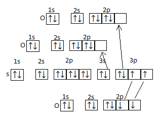 Siarka ma dwa elektrony niesparowane. Elektrony z podpowłoki 3p siarki uwspólniają się z elektronami tlenu z podpowłoki 2p i siarka uwspólnia dwie całe parę drugiemu i trzeciemu atomowi tlenu.