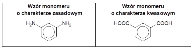 Uzupełnij tabelę, rysując wzory półstrukturalne (grupowe) lub uproszczone dwóch monomerów, z których można otrzymać opisany polimer.