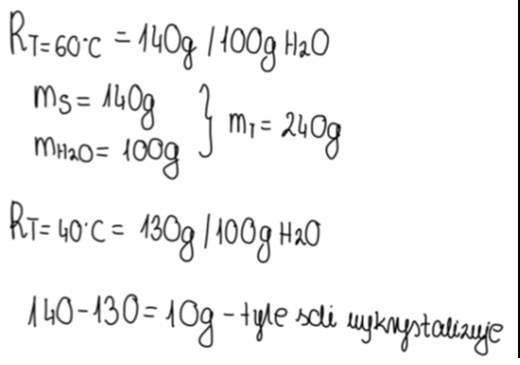 Ustal, ile gramów octanu sodu wykrystalizuje z 240 g roztworu nasyconego w temperaturze 60 °C po obniżeniu temperatury do 40 °C, korzystając z odpowiednich danych rozpuszczalności.