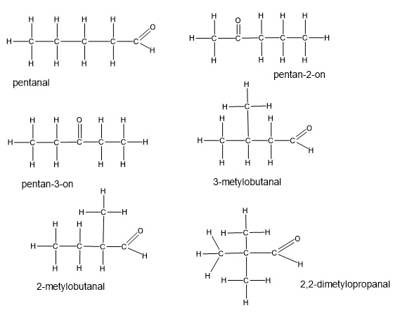 W tym zadaniu utwórz izomery (aldehydy i ketony) podanego związku – zapisz ich wzory strukturalne i nazwy systematyczne.
