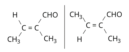 Przedstaw wzory półstrukturalne diastereoizomerów 2-metylobut-2-enalu.