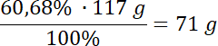 Zgodnie z zasadą zachowania masy, masa produktów i substratów musi być sobie równa. Wiedząc, że chlor stanowił 60,68% policz, ile to gramów ze 117 (dzielenie przez 100% wykonujemy w celu pozbycia się-skrócenia % z wyniku). Następnie od 117g odejmij wynik. Poznasz wtedy masę sodu.