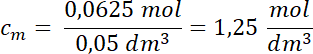 Odpowiedź: Stężenie molowe wynosi 1,25 mol/dm3.