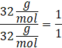Odczytujemy masę siarki i masę tlenu z układu okresowego (tlen występuje w dwuatomowych cząsteczkach, więc pomnażamy masę odczytaną razy 2). Dzielimy jedną masę przez drugą, aby poznać stosunek masowy siarki i tlenu w danym równaniu reakcji.