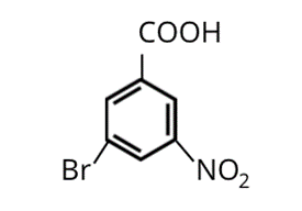 Produktem głównym monobromowania jest kwas 3-bromo-5-nitrobenzoesowy. Oba podstawniki: -COOH, jak i -NO2, są podstawnikami drugiego rodzaju. Oznacza to, że kolejne podstawniki kierowane są w pozycję meta. Atom bromu w tej konfiguracji jest w pozycji meta zarówno w stosunku do grupy karboksylowej, jak i nitrowej.
