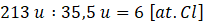 Znając masę atomową chloru, oblicz, ile jest atomów chloru: