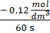 możemy obliczyć zmianę stężenia Δc. Aby wyliczyć przedział czasu, w jakim nastąpiła zmiana stężenia, odejmujemy czas początkowy od czasu końcowego. Finalnie podstawiamy wartości do wzoru, otrzymując wynik.