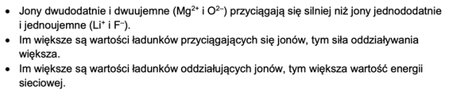 Wytłumacz, z jakiego powodu, mimo zbliżonych rozmiarów jonów, energia sieciowa MgO różni się znacząco od energii sieciowej LiF.