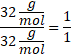 Odczytujemy masę siarki i masę tlenu z układu okresowego (tlen występuje w dwuatomowych cząsteczkach, więc pomnażamy masę odczytaną razy 2). Dzielimy jedną masę przez drugą, aby poznać stosunek masowy siarki i tlenu w danym równaniu reakcji.