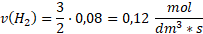 W danym momencie szybkość tworzenia amoniaku wynosiła 0,08 mol/(dm3·s). Oblicz, z jaką szybkością w tym samym czasie zużywany był wodór.