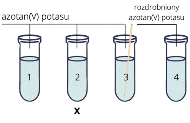 Obserwacje: Azotan(V) potasu szybciej rozpuszcza się w probówce drugiej, trzeciej i czwartej.