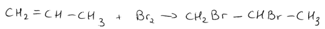 a) Addycja bromu do alkenu (brom przyłącza się do dwóch atomów węgla rozrywając wiązanie podwójne między nimi)