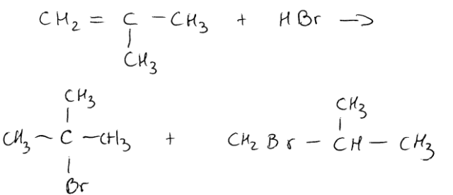 W pierwszej kolejności określamy, z jakim typem reakcji mamy do czynienia, a następnie wpisujemy produkt lub substrat w myśl mechanizmu, z jakim przebiega dana reakcja. Typy reakcji, z jakimi się tutaj spotykamy, to: addycja wody do alkenu, addycja halogenopochodnej do alkenu, addycja halogenu do alkenu. Reguła Markownikowa mówi nam o tym, że w wyniku addycji halogenopochodnej do węglowodorów nienasyconych wodór przyłącza się do grupy węgla, która zawiera więcej wodoru przed reakcją, a halogen do grupy węgla, która posiada mniejszą liczbę atomów wodoru przyłączonych przed reakcją.