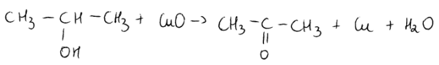 Wyliczamy najpierw masy molowe propan-2-olu i acetonu. Z równania reakcji układamy proporcję, gdzie jako niewiadomą przyjmujemy ilość otrzymanego acetonu (propanon). Rozwiązujemy proporcję i otrzymujemy gotową odpowiedź.