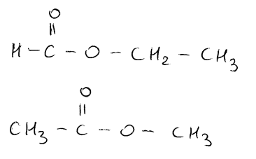 Izomery są związkami o tym samym wzorze sumarycznym, ale różnych wzorach strukturalnych. Aby utworzyć izomer kwasu propanowego tak, aby był estrem, najłatwiej jest „przenosić” grupy metylowe po kolei za atom tlenu.