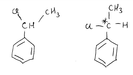 Atom węgla, do którego chlor się podłącza, staje się chiralny i możliwe jest występowanie enancjomerów.
