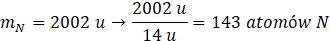 Skoro liczba atomów tlenu wynosi 10 x liczbę atomów azotu to