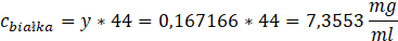 Stężenie białka w próbce wynosi: