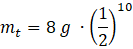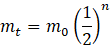 W tym wzorze mt oznacza masę próbki po czasie, m0 – masę początkową próbki, n – liczbę rozpadów.