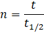 W tym wzorze t oznacza czas, w którym następuje rozpad, a t1/2 oznacza czas połowicznego zaniku.