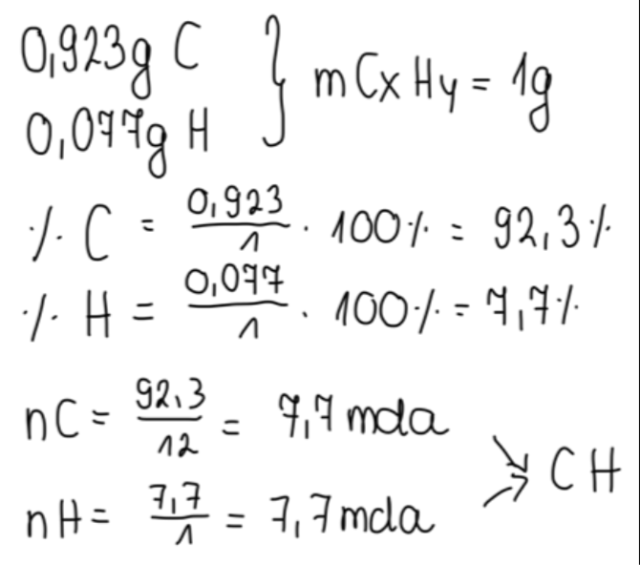 Na podstawie analizy jakościowej próbki nieznanego związku chemicznego, w której 1 g substancji zawiera 0,923 g węgla i 0,077 g wodoru, podaj wzór empiryczny tego związku.