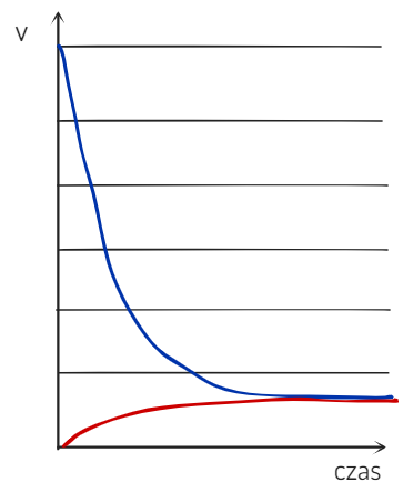 W tym zadaniu narysuj wykres zależności szybkości reakcji od czasu, w której prędkość reakcji w prawo jest bardzo duża, a w lewo bardzo mała.