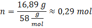 W tym zadaniu oblicz liczbę moli substancji w 16,89 g wodorotlenku magnezu.