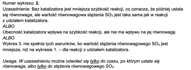 Wybierz wykres, który może odpowiadać reakcji utleniania SO2 do SO3 w temperaturze 𝑻1 prowadzonej bez udziału katalizatora, i napisz jego numer, a swoje stanowisko uzasadnij.