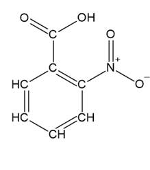 Przedrostek nitro- pochodzi od grupy –NO2, natomiast cyfra 2 oznacza numer atomu węgla, licząc od at. C kwasu karboksylowego, do którego przyłączona jest grupa karboksylowa. Przyrostek -benzenokarboksylowy oznacza, że jest to pierścień benzenowy.