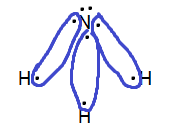W cząsteczce NH3 występują trzy wiązania kowalencyjne, które tworzą trzy pary elektronowe. Pozostałe pary są niewiążące.